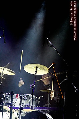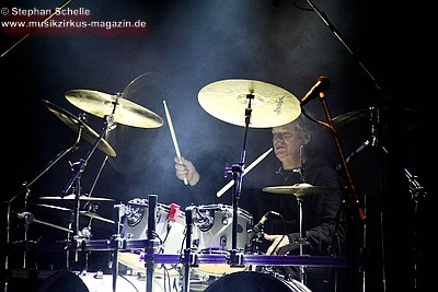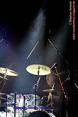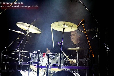sein unvergleichliches Drumsolo ein, bei dem er wieder seine Schlagstücke