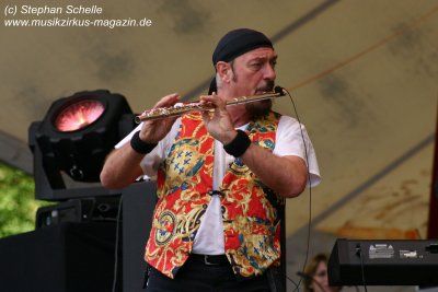der Bühne stand, war Martin Barre (Gitarren, Blockflöte). Daneben bestand