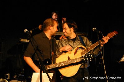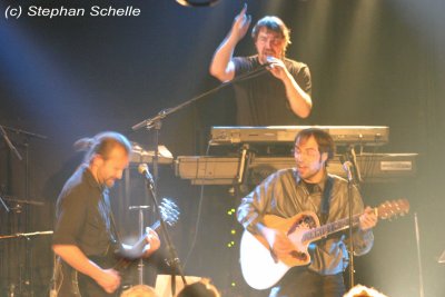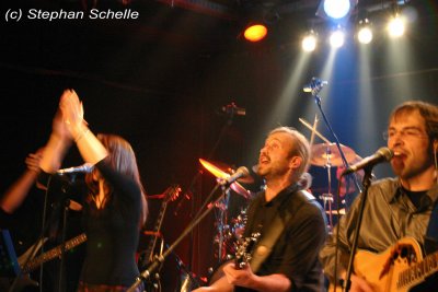 In dem über zweistündigen Programm, das sie nach mehrjähriger Bühnenabstinenz präsentierten, waren ältere Stücke, aber auch neue, bisher noch nicht aufgeführte Titel enthalten. Dabei präsentierten die sechs ausschließlich Eigenkompositionen. Zu Beginn stellte sich die Band mit einer Begrüßung des Publikums und Fotos der Bandmitglieder in Form einer Powerpointpräsentation vor, die auf dem Vorhang projiziert wurde. Dazu spielten sie einen Instrumentaltitel, der schon mal Appetit auf mehr machte. Dann fiel der Vorhang und es ging richtig ab. Ihr Mix aus Rock- und Popmusik klingt dabei absolut up to date. Mal hat man das Gefühl aktuellen Deutschpop zu hören, dann geht der Stil in die 70’er und 80’er zurück. Mitsingnummern wie „1,2,3,4,5,6,7,8“ wechselten sich mit mainstreamigen Rockpassagen ab. Beim absolut mitreißenden Stück „Drinnen“ zeigten sich beispielsweise ihre musikalischen Fähigkeiten.