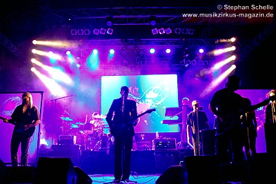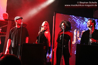 Backgroundsängern (zwei weibliche und zwei männliche) sehr voluminös.