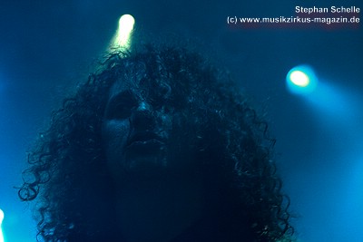 die Bühne kräftig eingenebelt und von den Scheinwerfern in