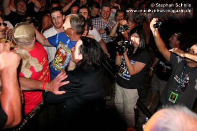 Graben vor der Bühne stieg. Auch diese Aktion wurde von begeisterten Fans