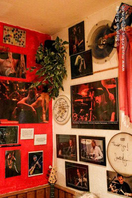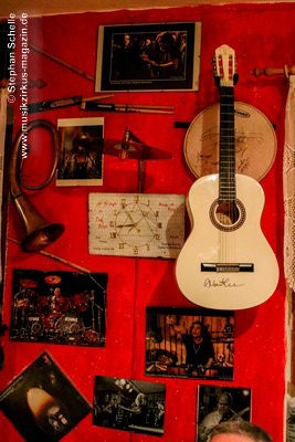 Utensilien wie Fotos, Gitarren und weiteren Instrumenten bestückt sind,