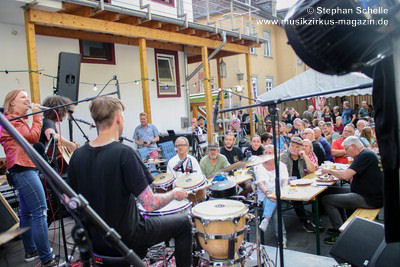 Schröder auf. Die Bühne war im Hof des Weinstübchens aufgebaut und bot
