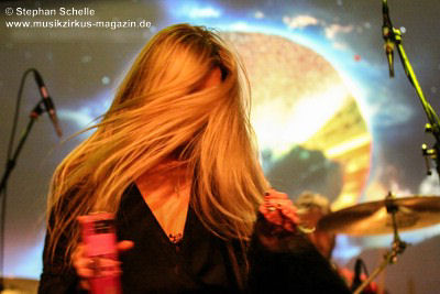 Gesangseinsatz ans Mikro trat, auf die Bühne. Dann startete die Band in