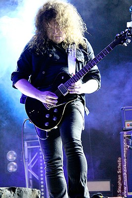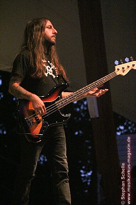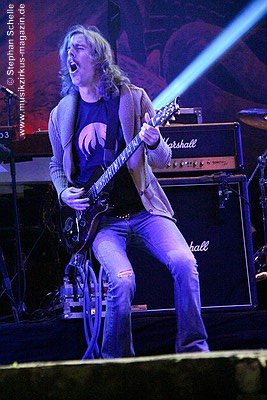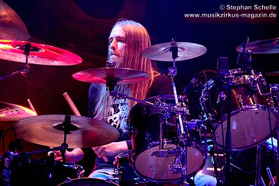 eine Akustische zur Hand, während Schlagzeuger Axenrot sich als