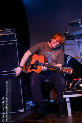 Freund und Tontechniker Mark Westwood an der Akustikgitarre die Band.