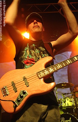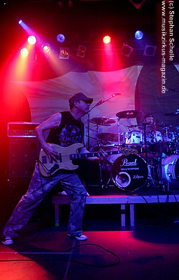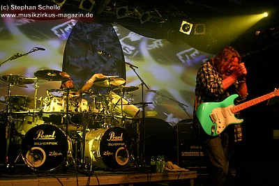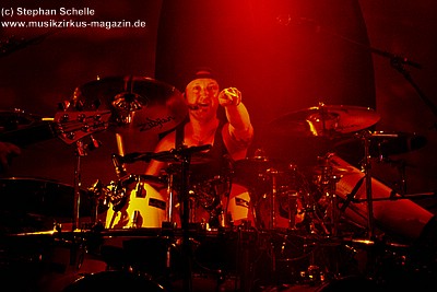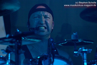 einem wieder mal vor Kraft strotzenden Scott Higham (Schlagzeug) mit einem