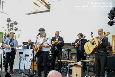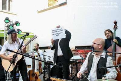 Pünk Flöyd haben Stücke des kompletten Pink Floyd-Repertoires drauf und spielten ein Set mit ihren Lieblingsstücken. Die Band präsentierte außergewöhnliche Versionen mit akustischen Instrumenten, was ihnen einen folkigen Anstrich verpasste. Gestartet wurde mit „Goodbye Cruel World“. Aber erst mit dem zweiten Stück „Welcome To The Machine“ wurde den Besuchern klar, was hier abging und so mancher verdrehte bei den ersten Tönen die Augen. Es dauerte aber nicht lange bis sich eine gewisse Faszination im Publikum für diese außergewöhnlichen Interpretationen der Stücke entfaltete.
