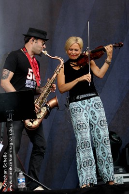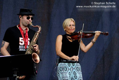 Kajper an Saxophon, Flöte und Klarinette sowie Steffi Hoelk an der Violine