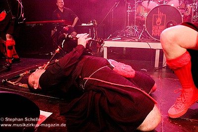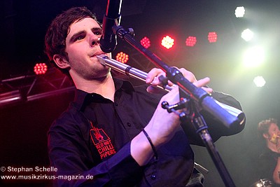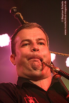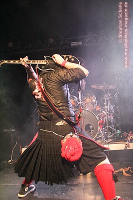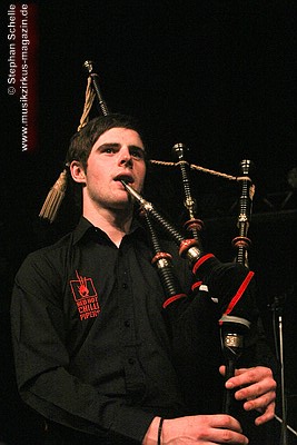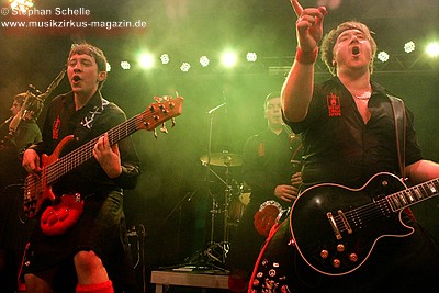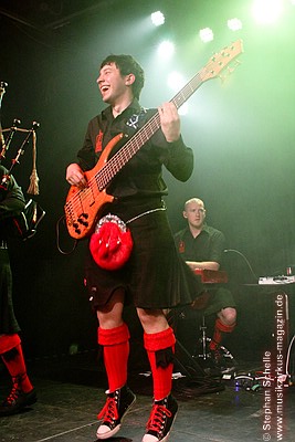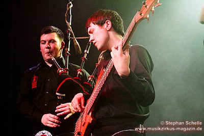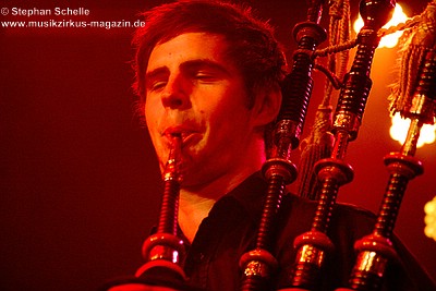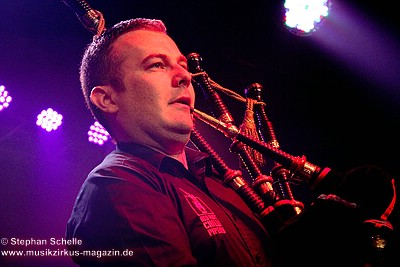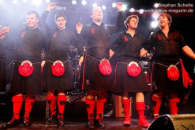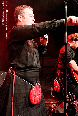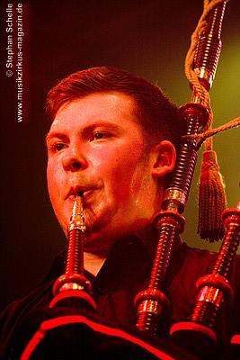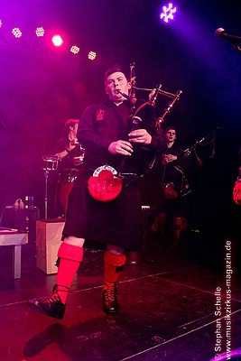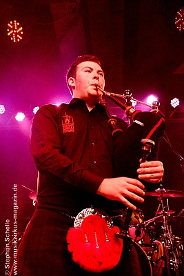 Zwischen den einzelnen Songs gab es nicht nur Ansprachen in englisch, nein die Musiker versuchten auch einige Ansagen auf deutsch zu machen. Und das machten sie mit einer gehörigen Portion Humor. Sie nahmen sich nicht ernst und das übertrug sich auch auf die gute Stimmung im Saal. Und das die Stimmung nicht nur vor der Bühne grandios war, das merkte man den Jungs auch auf der Bühne an, denn sie legten eine unglaubliche Spielfreude an den Tag. Während des Konzertes waren es vor allem die drei Dudelsackspieler, die durch eine rhythmische Performance ein tolles Bild abgaben. Da wurde dann auch schon mal unter lautem Jubel mit den Hüften geschwungen und die Kilts durch die Gegend geschleudert.