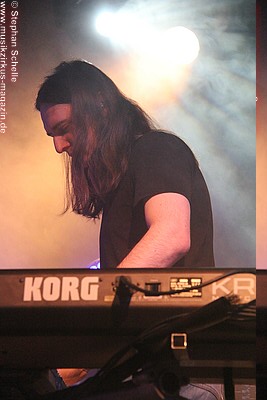 hinter seinen Keyboards ab. Man hatte das Gefühl, als wolle er seine
