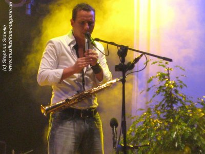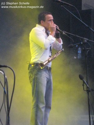 Aaron McDonald, der ihn hauptsächlich am Saxophon begleitete, trat er auf.