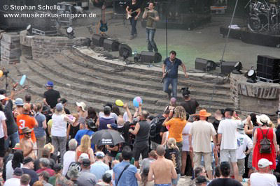 mittlerweile in Scharen vor die Bühne geeilt war, auf ihrer Seite. Danach