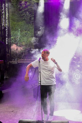 Er schnallte sich ein tragbares Keyboard um und kam in die Bühnenmitte.
