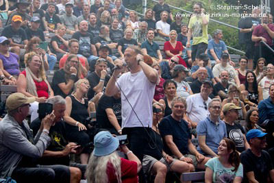 Kontakt zum Publikum indem er von der Bühne in die ersten Ränge ging und