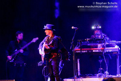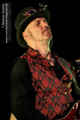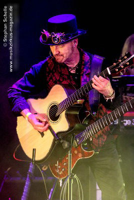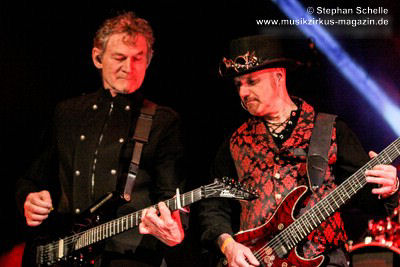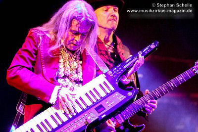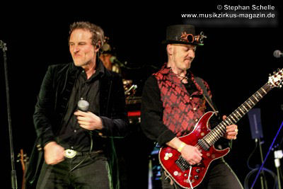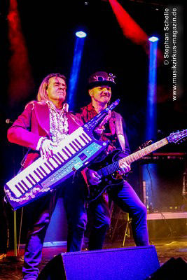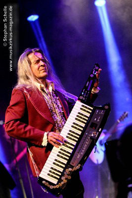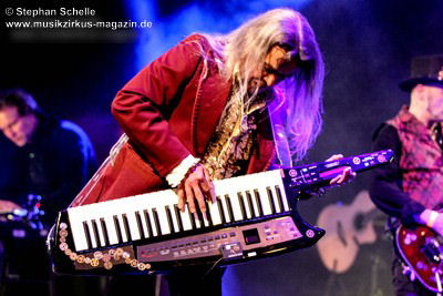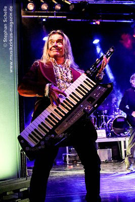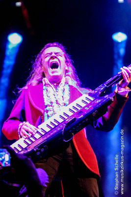 sondern glänzte auch mit tollem Solo am tragbaren Keyboard. Und auch die Gitarristen