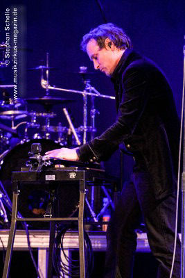 tragbares Keyboard um und spielte seine Parts direkt am Bühnenrand.