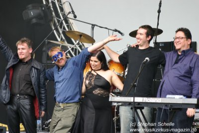 Musikerriege des Festivals am Start. Die Band setzt sich aus Shakira Searle