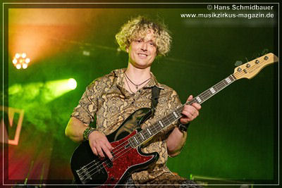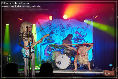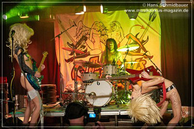 kurzerhand den Bass im Spagat spielte, kam das Publikum aus dem Staunen