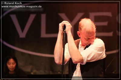 zentrale Figur vor dem großen schwarzweißen Vlyes-Banner ist und vokal