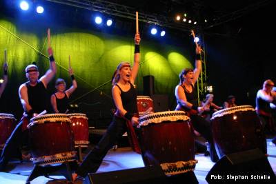 Mal sprang eine der Trommlerinnen in die Höhe, dann drehten die Trommler