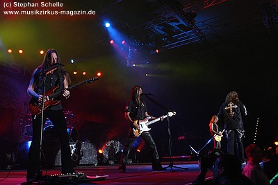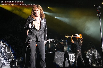 David Coverdale ist sein Alter wahrlich nicht anzusehen, so agil und dynamisch bewegt er sich posend auf der Bühne, als wären die letzten 30 Jahre spurlos an ihm vorüber gegangen. Zusammen mit seiner Band, bestehend aus Doug Aldrich (Gitarre), Reb Beach (Gitarre), Timothy Drury (Keyboards), Uriah Duffy (Bass) und Chris Frazer (Schlagzeug) bestritt er das Konzert, das Teil seiner „Good To Be Bad“-Welttournee ist.