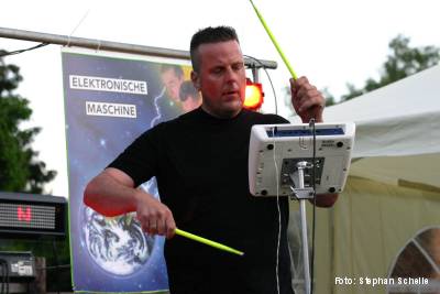Michael: Koto ist eine sehr interessante Gruppe. Aber die haben nicht viel gemacht. Das ist Italo-Music (Disco). Sie klingt ähnlich der Music von Laserdance. In unseren alten Stücken kann man auch den Einfluss von Koto heraushören. Für Elektronische Maschine ist es wichtig, dass wir etwas Eigenes machen. Die kraftvolle Musik, zusammen mit einer aktionsgeladenen Show, das wollen wir machen. Man sieht oft Shows, bei denen sich wenig auf der Bühne tut. Da kann man meiner Meinung nach auch die CD spielen und ein Poster vom Musiker aufhängen. Ich sage nicht, dass deren Musik schlecht ist, aber die Shows finde ich nicht gut, das darf ich sagen. Ich langweile mich da ein bisschen. Ich war letztes Mal beim E-Live und da hab ich mich wirklich gelangweilt. Es haben zwar meine favorisierten Musiker gespielt, aber ich habe mich trotzdem gelangweilt. Stephan: Es passiert oft zu wenig auf der Bühne. Michael: Es passiert nichts. (lacht) Wir machen eine Show. Aber einige Leute meinen auch, dass wir zu viel Show machen. Stephan: Vielen Dank für dieses sehr aufrichtige und interessante Gespräch. Die Homepage der Band findet ihr unter: http://www.elektronische-maschine.nl |