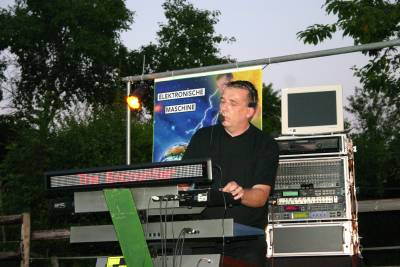 Stephan: Wie sind die Stücke auf der Kassette? Sind sie genau so wie auf den CDs? Steffen Flick (Fan der Band): Die Stücke sind mehr Kraftwerk-orientiert. Michael: Ja, das ist wirklich so. Am Anfang haben wir einen Sound gemacht, der mehr an Kraftwerk erinnerte. Später sind andere Einflüsse und andere Ideen hinzugekommen. Stephan: Jörg hat vorhin bei der Ankündigung etwas von Human League gesagt. Heißt dass, das eure Wurzeln auch im 80’er Synthiepop liegen? Michael: Ja, auf jeden Fall. Das ist ein sehr wichtiger Einfluss. Eine sehr wichtige Band für die Musik von Elektronische Maschine ist auch die Gruppe Koto (Anmerkung: hinter diesem Projekt stehen Anfrando Maiola und Stefano Cundari). Stephan: Da muss ich gestehen, dass ich Koto nicht kenne.